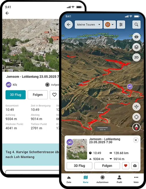 There is no reliable network in the Himalayas. Download all routes and maps in advance so you can use them safely via GPS even in the most remote areas.